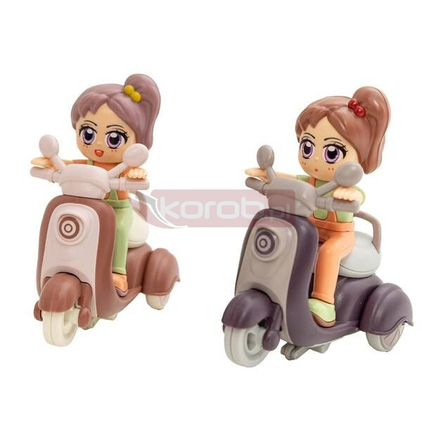 Dziewczynka na skuterze to niebywała gratka dla młodych miłośników i kolekcjonerów różnego rodzaju pojazdów. Odwzorowanie szczegółów oraz stonowane kolory sprawiają, iż skuter może stać się bohaterem niejednego pościgu. Pojazd z napędem friction to sposób rozpędzania zabawki przez wielokrotne poruszanie jej po gładkiej powierzchni, równocześnie trzymając ją w celu wzmocnienia efektu tj. szybszej jazdy po puszczeniu pojazdu. Pakowanie display - 12 szt. Wymiary zabawki: 11x7x11 cm Wiek: 3+ lat Wymiary opakowania: 33x31x12 cm