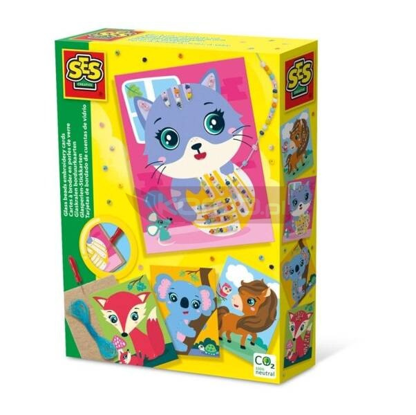 Cztery wesołe karty do wyhaftowania szklanymi koralikami! Umieść wybraną kartę na filcu i nakłuj wszystkie otwory w karcie za pomocą igły do nakłuwania. Następnie nawlecz wesołe szklane koraliki na elastyczną nić i udekoruj wszystkie karty! - 4 karty do haftowania - Filc do nakłuwania - Igła do nakłuwania - Szklane koraliki w różnych kolorach - Elastyczna nić; - Instrukcja;