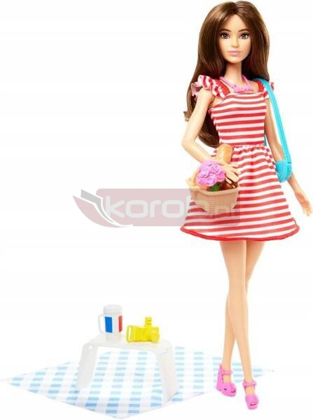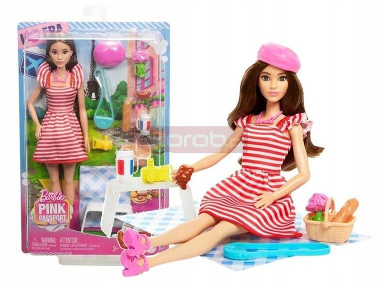 Spędź razem z Barbie wspaniały dzień w Paryżu Barbie jest gotowa na piknik w Paryżu z zestawem z różowym paszportem. Udekoruj koc w kratkę pięknymi dodatkami, takimi jak wiklinowy kosz, bukiet kwiatów, rogalik i bagietka. Ubrana jest jak w ogrodzie, w elegancką sukienkę i beret. Dzieci mogą odkrywać świat z Barbie podczas wszystkich jej przygód z Różowym Paszportem! Piknik w Paryżu z Barbie i zestawem lalek z różowym paszportem! Dzieci (w wieku powyżej 3 lat) mogą odkrywać świat z Barbie podczas wszystkich jej przygód z Różowym Paszportem. Wysuń perforowaną pieczątkę paszportową na opakowaniu.