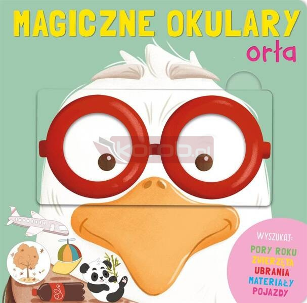 Na kolejnych stronach mały czytelnik będzie przykładał magiczne okulary, żeby wyszukiwać pary i porządkować informacje. Maluch dopasuje pory roku do kojarzących się z nimi rzeczy, ubrania do ich przeznaczenia, pokarm do zwierząt, przedmioty do materiałów, z których są wykonane, a pojazdy do zawodów. Dzięki temu utrwali swoją wiedzę, a przy okazji rozwinie spostrzegawczość i koordynację. Trzeba się dobrze skupić, jest tyle do wyszukania!
