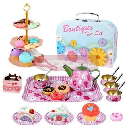 Tacka jest idealna do prezentowania herbaty i pysznych ciasteczek, a patera z różnymi słodyczami dodaje uroku i smaku zabawie. Dzieci mogą wybierać swoje ulubione słodycze i umieszczać je na paterze, aby podać je swoim gościom.