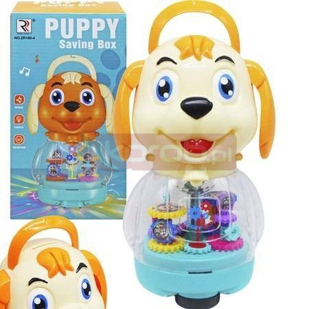 Nauka oszczędzania pieniędzy: Zabawka posiada specjalną dziurkę na pieniądze umieszczoną na głowie pieska, co zachęca dzieci do nauki oszczędzania pieniędzy. Głowę pieska można odkręcić, aby wyciągnąć oszczędności, co stanowi dodatkowy element edukacyjny i uczy dziecko odpowiedzialności finansowej już od najmłodszych lat.