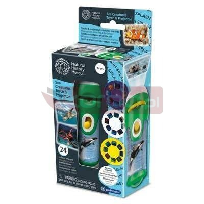 Ta fantastyczna latarka to również projektor, który wyświetla ekscytujące obrazy stworzeń morskich takich jak płetwal błękitny, ryba błazenek, rozdymka, ośmiornica, wydra morska i żarłacz biały. Zobacz te żywe postacie na ścianach i sufitach świetny towarzysz przed snem, dzięki któremu zasypianie będzie przyjemniejsze. Do latarki dołączone są trzy slajdy z 24 kolorowymi obrazami. Z łatwością wymieniaj i zmieniaj slajdy, odciągając plastikową klapkę i wkładając wybrany dysk, a następnie obracając dysk, aby wyświetlić fantastyczne obrazy o szerokości do jednego metra. Obrazy można łatwo ustawić, obracając głowicę obiektywu. Produkt ten może być używany jako zwykła latarka bez założonych slajdów i doskonale nadaje się do przechowywania na stolikach nocnych, aby zapewnić dzieciom komfort w nocy. Latarka ma 12 cm długości i około 4 cm średnicy w najszerszym miejscu. Zasilana bateriami - 2 x AAA załączonymi w zestawie.