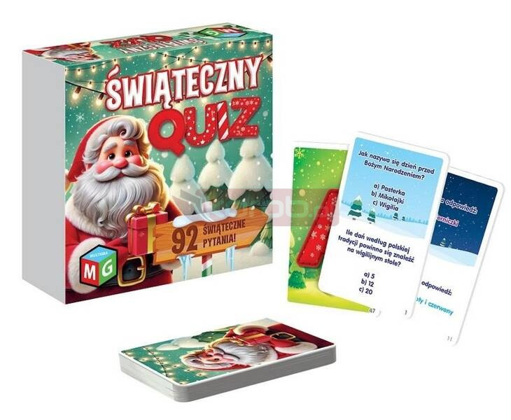 Rodzinny quiz świąteczny zapewnia świetną zabawę dla wszystkich pytania są zróżnicowane, więc każdy, od najmłodszych po dorosłych, będzie się doskonale bawił. To idealna propozycja na wspólną rozrywkę w czasie Świąt oraz świetny pomysł na prezent pod choinkę czy na Mikołajki.