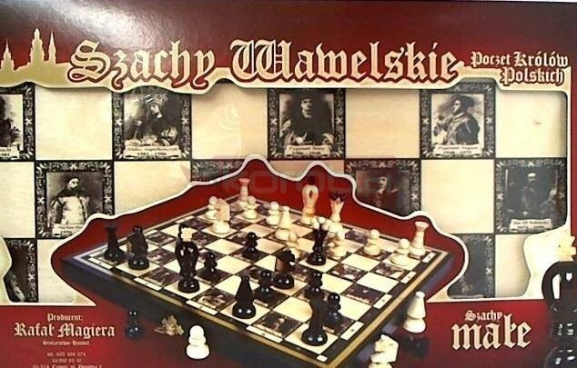 zakupów i zadowolenia z tej " Królewskiej gry ". Szachownica wyposażona jest we flokowaną wkładkę z przegródkami , służącą do przechowywania figur szachowych .Wykonana została z drewna bukowego i brzozowego. Każde z pól szachownicy jest ozdobione portretami Królów Polski . Na planszy znajdują się zarówno daty panowania, jak i charakterystyczne dla nich przydomki .