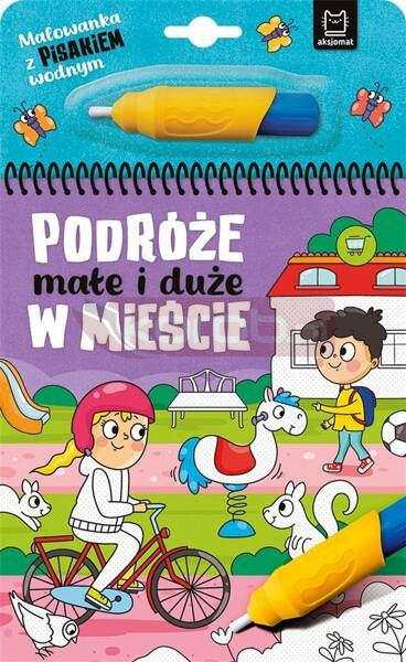Użyj magicznego pisaka i odwiedź z nami mieszkańców miasta! Sprawdź, co kryje się za białymi stronami i poznaj ciekawe miejsca. Na kartach tej książeczki zabieramy cię na spotkanie z gołębiami przy fontannie, zobaczymy ruchliwe ulice, by potem udać się do parku i karmić kaczki, a następnie bawić się w parku na placu zabaw lub jeździć na hulajnodze i karmić wiewiórki. Wystarczy tylko napełnić wodą pisak i malować nim dokładnie całą kartę. Po chwili pojawi się ilustracja - poproś dorosłego lub sam przeczytaj wierszyk i spróbuj rozwiązać podane zadania. Kiedy pozostawisz książkę na kilka minut do wyschnięcia, kolory z powrotem znikną, a ty możesz rozpocząć zabawę od nowa. Książeczki "Malowanka z pisakiem wodnym" to doskonała zabawa na długie godziny, która rozwija sprawność manualną malucha i pobudza jego wyobraźnię. Zadania pomogą w doskonaleniu koncentracji i kreatywności dziecka. Dzięki ciekawej i oryginalnej formie są doskonałym pomysłem na prezent. Użyj wody i baw się kolorami! Dołączony do książki pisak wystarczy napełnić wodą i można już rozpocząć zabawę - na zwilżonych mokrym pędzelkiem stronach pojawią się kolorowe ilustracje. Znikną, kiedy strona wyschnie. Książką można bawić się wiele razy. Po zabawie należy wylać wodę z pisaka i schować go do opakowania. Dodatkową atrakcją są zamieszczone na kartach wierszyki i zagadki oraz ćwiczenia w szukaniu elementów.