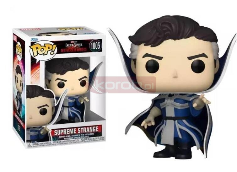 Funko Pop! Supreme Strange - Doctor Strange in the Multiverse of Madness to figurka kolekcjonerska, która przenosi fanów Marvela w niezwykły świat alternatywnych rzeczywistości. Przedstawiając Supreme Strangea, postać, którą poznajemy w filmie Doctor Strange in the Multiverse of Madness, figurka ta przyciąga wzrok swoim eleganckim strojem oraz tajemniczym wyrazem twarzy. Każdy szczegół, od charakterystycznej peleryny po intensywne spojrzenie, oddaje potężny charakter tej wersji Doktora Strangea.