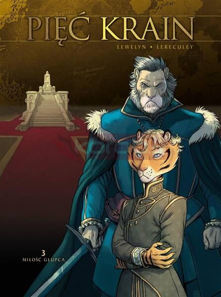Trzeci tom sagi fantasy porównywanej pod względem rozmachu i dramaturgii wydarzeń ze słynną "Grą o tron"! Chwieje się potęga rządzonego przez tygrysy Angleonu. Czy po krwawych mordach w obrębie dynastii tron przypadnie niepełnoletniemu Mederionowi? A może po koronę postanowią sięgnąć waleczne lwy? Toczą się zakulisowe gry stronnictw i najwyższych urzędników państwowych. Tymczasem kadet Gwardii This zyskuje potężnego opiekuna, najemnik Kirill wyrusza w nową misję, a zakładnicy z podbitych krain opracowują plan ucieczki z imperialnego pałacu... Scenariusz "Pięciu Krain" pisze troje twórców występujących pod wspólnym pseudonimem Lewelyn (pisarka i scenarzystka Mlanie Guyard, znana też jako Andoryss - cykl powieści "Les Enfants d'Evernight", seria komiksowa "Le Soufflevent"; David Chauvel, autor scenariuszy do kilkudziesięciu komiksów, np. mitycznego "Arthur" czy historycznego "Ce qui est nous"; młody scenarzysta Patrick Wong doceniony za pierwsze tomy opowieści "En falsh"), a rysunki są dziełem Jrme'a Lereculeya, współautora kilkunastu serii przygodowych, mitycznych, historycznych ("Wollodrin", "Cairn", "Golias", "Arthur").