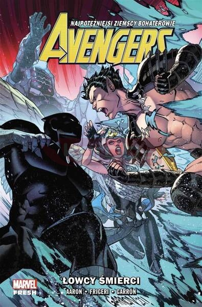 Dziesiąty tom przygód Avengers z serii wydawniczej Marvel Fresh! Głęboko w mrocznym sercu multiwersum stoi lśniąca wieża strażnicza. To siedziba cybernetycznych żołnierzy zwanych Deathlokami, którzy mierzą się z najpoważniejszymi zagrożeniami dla niezliczonych domen tworzących rzeczywistość. Teraz ci wojownicy przybywają na Ziemię ze złowrogim ostrzeżeniem dla Avengers: nadchodzą Black Skull, Ghost Goblin, młody Thanos, Doom Supreme i inni multiwersalni złoczyńcy. Na szczęście najpotężniejsi ziemscy bohaterowie mogą wezwać na pomoc sojuszników - w tym Jane Foster! Czy jej dwie wersje - Potężna Thor i Walkiria - zjednoczą się, by ocalić jej duszę? Dodatkowo: sekretne pochodzenie Thora - ujawnione! Autorem tej opowieści jest Jason Aaron, zdobywca Nagrody Eisnera i innych najważniejszych komiksowych wyróżnień, znany z takich serii jak: "Skalp", "Thor Gromowładny" i "Potężna Thor", "Punisher Max" czy "Conan Barbarzyńca". Rysunki stworzyli między innymi Juan Frigeri ("Darth Maul: Syn Dathomiry") i Javier Garrón ("Inhumans kontra X-Men", "Śmierć X"). Album zawiera materiały opublikowane pierwotnie w zeszytach #51-56 serii "Avengers" oraz w zeszytach "Free Comic Book Day 2021: Avengers/Hulk" #1 i "Avengers 1,000,000 BC" #1.