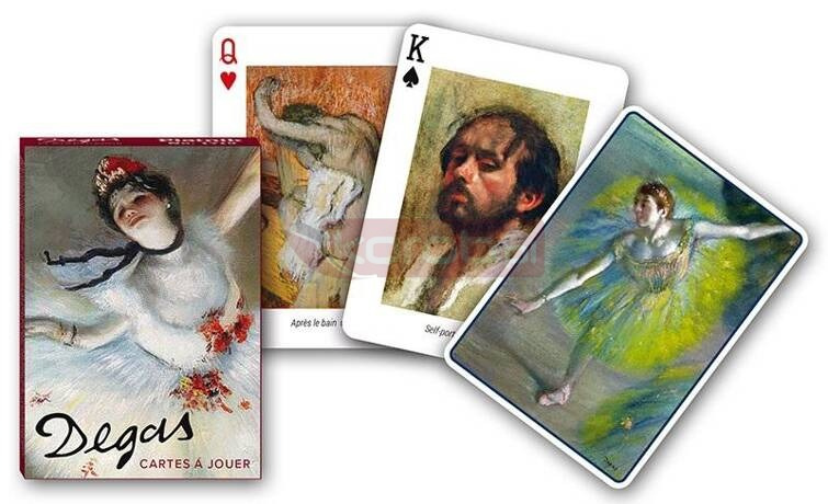 Karty do gry z oryginalnymi awersami związanymi z dziełami słynnego francuskiego malarza i rzeźbiarza impresjonistycznego Edgara Degasa. Talia składa się z 54 plastikowanych kart o wymiarach 63 x 88 mm. Wyroby wiedeńskiej fabryki Ferd. Piatnik & Sohne od 1824 roku urzekają bogactwem wzorów i perfekcją wykonania.