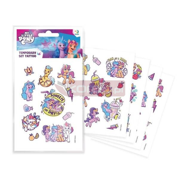 Zestaw tymczasowych tatuaży "My Little Pony" to doskonały sposób na dodanie odrobiny zabawy i koloru do codziennego życia dziecka. Te kolorowe, bezpieczne dla skóry i trwałe tatuaże o różnych wzorach z motywem bajki "My Little Pony", zapewniają wiele radości i kreatywnych możliwości.