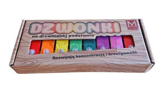 Dzwonki 8-tonowe kolorowe na drewnianej ramie