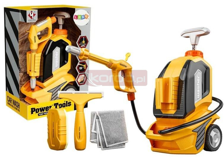 Myjka Ciśnieniowa Dla Dzieci Ściereczka Gąbka Ściągaczka Myjka ciśnieniowa z funkcją wody to wspaniała zabawka dla dzieci, które uwielbiają naśladować dorosłych w codziennych czynnościach. Ta łatwa w obsłudze myjka nie wymaga użycia baterii - wystarczy napełnić zbiorniczek znajdujący się na górze zabawki wodą, a następnie poruszać rączką w górę i w dół, aby uzyskać ciśnienie. Aby myjka zaczęła działać, należy włożyć kluczyk do pistoletu i nacisnąć przycisk na rączce, co spowoduje wypuszczenie strumienia wody. Zestaw obejmuje także ściągaczkę do wody, gąbkę oraz ściereczkę, co pozwala na różnorodną zabawę i naukę podstawowych czynności domowych. Wszystkie elementy wykonane są z najwyższej jakości materiałów, są trwałe i nie posiadają ostrych krawędzi, co sprawia, że zabawka jest w pełni bezpieczna dla dzieci. Dzięki swojej konstrukcji zabawka rozwija zdolności manualne, koordynację ruchową i kreatywność, zapewniając przy tym mnóstwo radości i długie godziny zabawy. To idealny wybór dla każdego małego odkrywcy, który uwielbia pomagać w porządkach i czerpać przyjemność z zabawy w wodzie! Wymiary myjki: 36cm x 20cm x 17cm Wymiary opakowania: 38,5cm x 26cm x 18cm Posiada certyfikat CE, ponadto jest zgodny z normą EN71. Przeznaczony dla dzieci powyżej 3 roku życia.