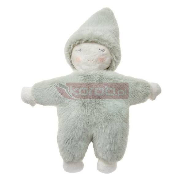 Pluszowa grzechotka z kapturkiem na główce w kolorze miętowym. Wykonana jest z mięciutkiego, przyjemnego pluszu. Przy potrząsaniu grzechotką maluch usłyszy dźwięk dzwoneczka ukrytego w środku grzechotki. Dostarczy dziecku wiele radości przy okazji rozwijając jego sensorykę. Grzechotka może być także przytulanką.