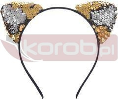 Opaska na głowę z kocimi uszami. Uszy pokryte są dekoracyjnymi cekinami w dwóch kolorach - srebrnym i złotym. Po obróceniu cekinów można wybrać kolor. Oryginalna ozdoba na bal karnawałowy, wieczór panieński, zabawę tematyczną.
