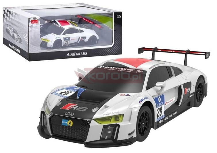 Auto R/C 1:24 Zdalnie Sterowane Sportowe AUDI R8 LMS Biało-Czarne Przeżyj ekscytację jazdy legendarnym sportowym AUDI R8 LMS dzięki naszemu zdalnie sterowanemu modelowi! Oferujemy Ci możliwość wcielenia się w kierowcę jednego z najbardziej ikonicznych samochodów sportowych na świecie. Nasz model Audi R8 to nie tylko zabawka, ale również prawdziwa gratka dla miłośników motoryzacji i kolekcjonerów. Model odwzorowuje każdy detal prawdziwego Audi R8 w limitowanej wersji LMS, od agresywnej sylwetki po precyzyjnie wykonane wnętrze. Dzięki starannemu wykonaniu i dbałości o szczegóły, możesz poczuć się jak właściciel oryginału. Wykonany z trwałych materiałów, model zapewnia długą żywotność i odporność na uszkodzenia, a precyzyjne malowanie i realistyczne elementy podkreślają sportowy charakter tego pojazdu. Model posiada otwierane drzwi, dzięki czemu można zajrzeć do jego pięknie odwzorowanego wnętrza. Auto zasilane jest na akumulatory 5x 1.5V AA, które nie są elementem zestawu. Pilot zasilany jest na baterie 2x 1.5V AA, które nie są elementem zestawu. Wymiary auta: 35 cm x 10 cm x 9 cm Wymiary opakowania: 39 cm x 12 cm x 10 cm Posiada certyfikat CE, ponadto jest zgodny z normą EN71. Przeznaczony dla dzieci powyżej 6 roku życia.