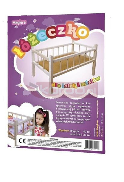 Drewniane łóżeczko w klasycznym stylu, wykonane z najwyższej jakości drewna bukowego. Naturalne drewno nie tylko prezentuje się elegancko , ale jest również przyjazne dla środowiska. Polecamy nasz produkt, który łączy w sobie wysoką jakość wykonania oraz efektowny wygląd. Produkt wysyłany jest w elementach przeznaczonych do samodzielnego montażu (8 śrub i kluczyk imbusowy jest w zestawie ) a jego złożenie jest wyjątkowo proste. Łóżeczko jest trwałe i wytrzymałe z solidnym spodem. W trosce o bezpieczeństwo wszystkie elementy zostały starannie wygładzone i zaokrąglone. Wymiary łóżeczka: długość 49cm, szerokość 28cm.