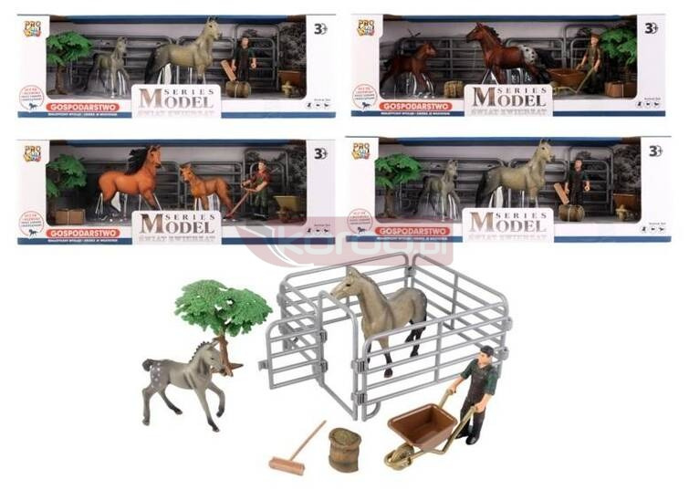 - Realistyczne figurki koni: Zestaw zawiera dokładnie wykonane figurki koni oraz źrebiąt, które umożliwiają odtwarzanie codziennego życia na farmie.