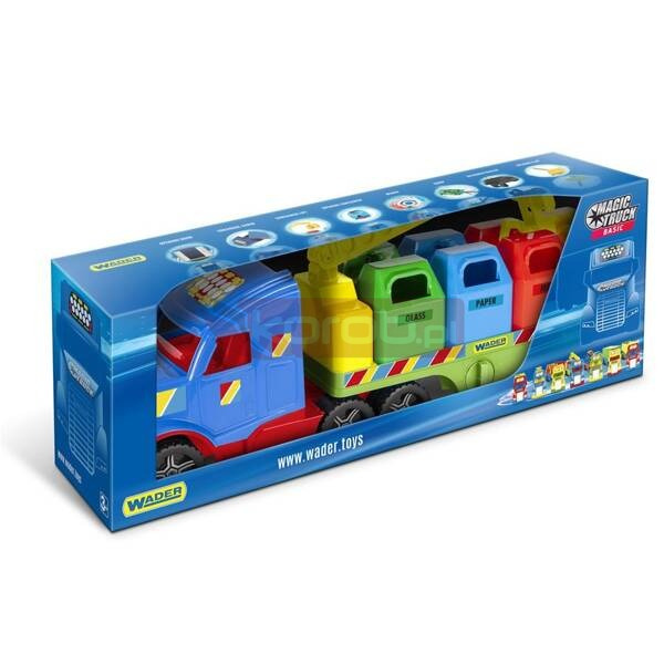 Opis produktu Magic Truck Basic to niepowtarzalna seria dużych pojazdów, o których marzy każde dziecko. Stworzone z pasją, są odzwierciedleniem prawdziwych ciężarówek dzięki czemu można się nimi bawić na wiele sposobów. Dodatkowo piękne żywe kolory pojazdów dostarczą dzieciom jeszcze więcej radości! Magic Truck Basic Śmieciarka recyklingowa to zabawka, którą charakteryzuje realistyczny wygląd oraz lekkość wytrzymałej konstrukcji. W skład zestawu wchodzą: pojazd, 4 kontenery na śmieci z otwieranym spodem oraz ruchomy dźwig, który ma możliwość ściągania ich z ruchomej naczepy. Naczepa posiada nogi podporowe, przez co może stać się samodzielnie stojącą przyczepą. Opis techniczny realistyczny pojazd o długości 78 cm z 4 kontenerami na śmieci z otwieranym spodem oraz z ruchomym dźwigiem lekka, wytrzymała konstrukcja wykonana z bezpiecznych materiałów odpornych na różne warunki atmosferyczne odpowiedni dla dzieci