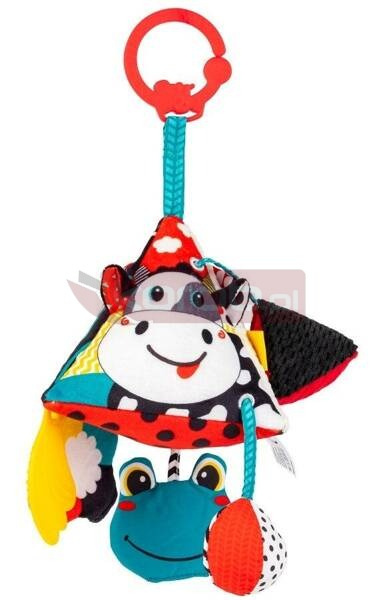 Razem z wesołymi zwierzakami odkryj radość z sensorycznej zabawy! Na kontrastowej piramidce ukryło się wiele niespodzianek, a wśród nich bezpieczne lusterko do samopoznania malucha, piszczałka, tasiemki do przeciągania z materiałowymi zabaweczkami oraz gryzak w kształcie żółciutkiej kiści bananów, który z pewnością przyda się każdemu ząbkującymi bobasowi. Zastosowane w piramidce materiały różnią się zarówno fakturą, jak i wzorem czy kolorem, dzięki czemu podczas zabawy, będzie ona stymulować zmysły malucha i pomagać mu w rozwijaniu zdolności poznawczych. Praktyczna zawieszka, w którą wyposażona została zabawka, pozwoli zawiesić ją w wybranym miejscu.