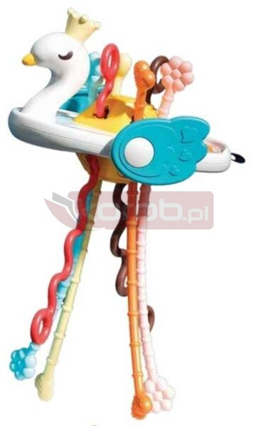Urocza zabawka, która kryje w sobie niespodzianki, stymulujące zmysł dotyku maluszka! Łabędź wyposażony jest w linki do przeciągania, różniące się kolorem, kształtem i fakturą, skrzydełka z wypustkami, a także kropeczki do wciskania. Kształt zabawki z pewnością przypadnie do gustu młodym poszukiwaczom sensorycznych przygód!