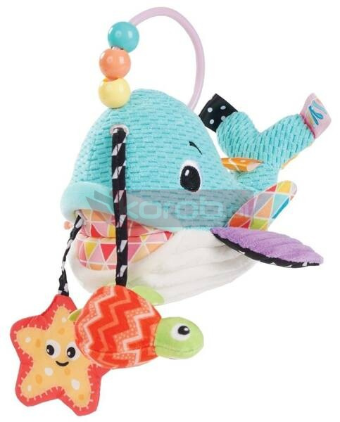 Koleżka wprost z morskich głębin zabawi sensorycznie i to na różne sposoby! Wieloryb wyposażony został w tasiemkę do przeciągania z doczepionymi do niej dwoma kształtami: szeleszczącą rozgwiazdą i kolorowym żółwiem. Ciałko wieloryba zostało uszyte z materiałów o zróżnicowanych fakturach i ozdobione dodatkowo kolorowymi metkami, dzięki czemu jego głaskanie będzie stymulować zmysł dotyku malucha. Na boku Waldusia znajduje się miękki gryzaczek, a jego głowę zdobi praktyczny uchwyt z koralikami do przesuwania paluszkiem. Ta urocza zabawka w kolorowym opakowaniu będzie świetnym prezentem dla małych miłośników morskich zwierzaków.