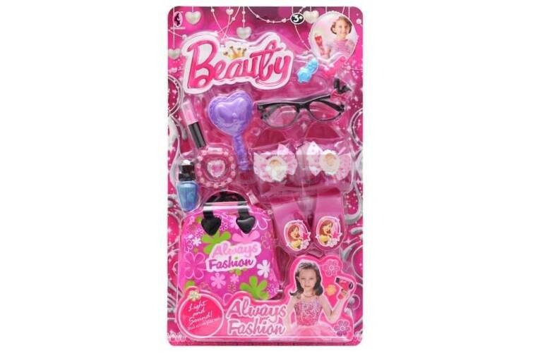W komplecie buciki, torebeczka, szczotka, pomadka, okulary, szczotka, pierścionek, bransoletka, spinki.