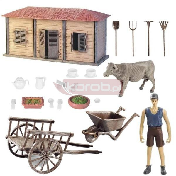 Domek Rolnika to miejsce na wsi, gdzie można układać historie, odpoczywać i przyjmować gości. Każda farma potrzebuje swojego gospodarza, który troszczy się o zwierzęta i uprawia pola - zatem figurka rolnika jest gotowa do akcji! Aby domek powstał należy samodzielnie go złożyć!