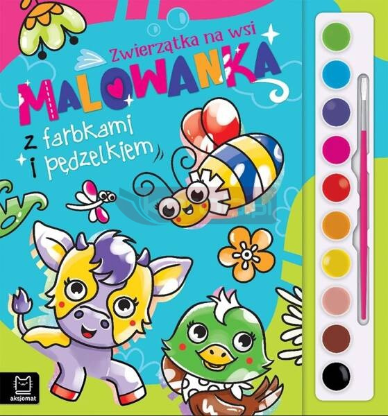Piękne obrazki, pędzelek i zestaw farbek to propozycja dla małych artystów. Zapraszamy na spotkanie z mieszkańcami wsi - poznaj każdego z nich z osobna. Są tu: świnka, szybki kucyk Karino, kogut Czester, owieczka Beza, indyczka Izaura, króliczek Flopcio, kurka Hilda, myszka Śmieszka, krówka Blenda, żabki Alma i Wera, ślimak Lucjan, Biedronka Fionka i mały ptaszek. Który zwierzak chce się bawić w chowanego? Który złości się i rozkłada ogon? Czy Śmieszka znajdzie krecika Dyzia? Lubiana przez dzieci tematyka rysunków i ciekawe historyjki o zwierzętach zachęcą dzieci do kolorowania. Malowanki ze zwierzakami to świetna zabawa kolorami, która rozwinie kreatywność i sprawność manualną dziecka. Pozwoli również ćwiczyć cierpliwość i koncentrację. Dołączony do książeczki zestaw 10 kolorów farbek i pędzelek pozwalają dziecku rozpocząć zabawę gdzie i kiedy chce - wystarczy tylko odrobina wody. Baw się kolorami razem ze zwierzętami! Malowanka z farbkami i pędzelkiem to strzał w dziesiątkę!