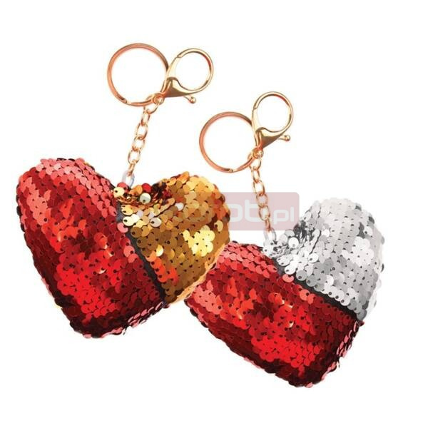 Breloczek serduszko - cekiny dwustronne. Wymiar: 9,5 cm.