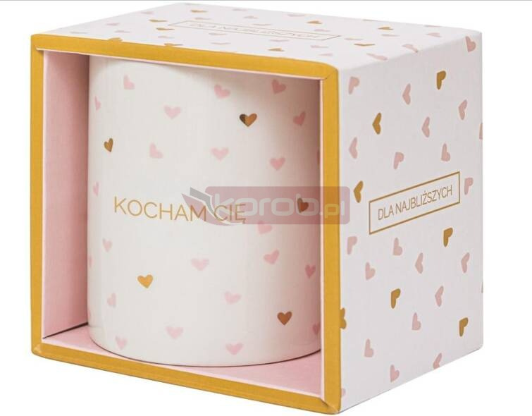 Jeśli szukasz wyjątkowego prezentu, kubek z nadrukiem Kocham Cię to idealny wybór. Pastelowy design, pojemność 350 ml i subtelny grawer wewnątrz sprawią, że każdy będzie zachwycony. Kubek wysyłamy w ozdobnym kartoniku, gotowym do wręczenia. SPECYFIKACJA KUBKA: Specjalna dedykacja: Kocham Cię Dodatkowy mały grawer na wewnętrznej stronie Materiał: ceramika, porcelana Pojemność: 350 ml Eleganckie kartonowe opakowanie ZABRONIONE jest mycie w zmywarce