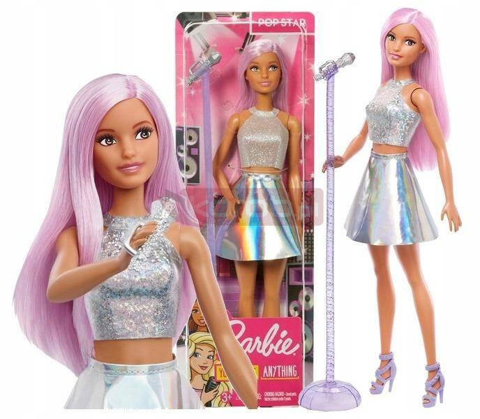 Z Barbie® dzieci odkrywają przeróżne zawody i uczą się, że mogą być kim chcą! Każda lalka ma tematyczny strój i akcesoria, które pomagają jej w realizacji marzeń. Jest tak wiele interesujących ścieżek kariery do odkrycia! Chwyć mikrofon i zabłyśnij na scenie razem z lalką Barbie® Gwiazdą popu. Lalka ma na sobie mieniący się strój, a do tego posiada mikrofon i statyw. Jej długie, różowe włosy wyróżniają ją z tłumu! Odkryj i zbierz inne lalki oraz zabawki Barbie® z linii Kariera, aby zabawa była jeszcze bardziej różnorodna, bo kiedy dzieci bawią się Barbie®, mogą być kim chcą (zabawki sprzedawane oddzielnie, zależnie od dostępności). W zestawie jest lalka gwiazda pop w stroju i bucikach oraz zabawkowy mikrofon i statyw. Świetny prezent dla fanów Barbie.