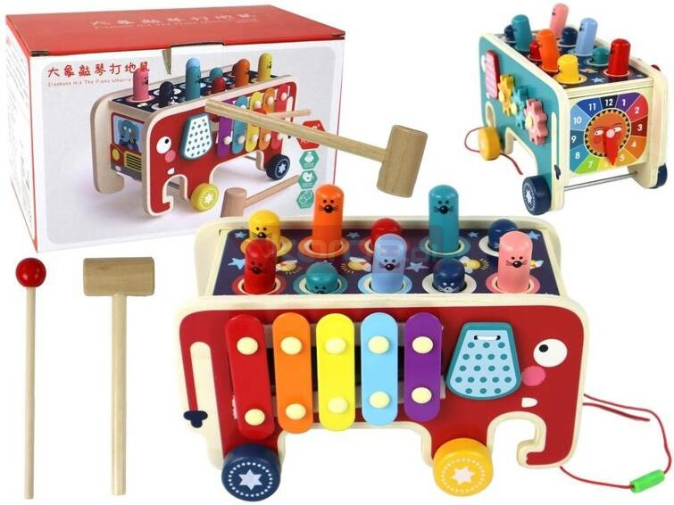 Drewniana Gra Zręcznościowa Dla Dzieci Whaca-mole Cymbałki Zapraszamy do naszego sklepu internetowego, gdzie prezentujemy fascynującą grę zręcznościową dla dzieci o nazwie "Whac-a-Mole Cymbałki". Ta urocza i kolorowa zabawka ma kształt słonia i jest zaprojektowana z myślą o dostarczeniu dzieciom zarówno rozrywki, jak i edukacji. Zestaw składa się z drewnianego autka z motywem słonika, które przyciąga uwagę najmłodszych graczy. Na górze autka znajdują się kolorowe główki podziemnych zwierząt, które stają się celem gry "Whac-a-Mole". Dzieci próbują zbić je za pomocą dołączonych młotków, rozwijając przy tym swoje zdolności zręcznościowe i koordynację ruchową. Dodatkową atrakcją są cymbałki umieszczone po boku autka, które można uderzać za pomocą dołączonej pałeczki, co wprowadza element dźwiękowej zabawy. Dzięki temu zabawa staje się jeszcze bardziej interaktywna i wciągająca. Zestaw jest kompletny i zawiera autko z sznureczkiem do ciągnięcia, 2 młotki do gry w "Whac-a-Mole" oraz pałeczkę do cymbałków. Ponadto, zabawka jest wykonana z bezpiecznego drewna, co gwarantuje trwałość i bezpieczeństwo dla dzieci. Wymiary opakowania wynoszą 24 cm x 15 cm x 15 cm. "Drewniana Gra Zręcznościowa Dla Dzieci Whac-a-Mole Cymbałki" to nie tylko doskonała zabawa, ale także narzędzie wspierające rozwijanie umiejętności manualnych i zmysłów dzieci. To idealny prezent, który uczy i bawi jednocześnie. Zachęcamy do zakupu i sprawienia radości swoim najmłodszym już teraz! Wymiary opakowania: 24 cm x 15 cm x 15 cm Produkt posiada certyfikat CE i jest zgodny z normą EN71. Produkt odpowiedni dla dzieci powyżej 3. roku życia.