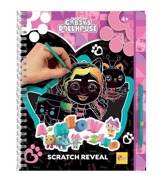 Poznaj magię kolorów dzięki scratch reveal z bohaterami Kociego Domku Gabi w uroczej stylistyce. Wystarczy za pomocą dostarczonego długopisu zdrapać czarną, wierzchnią warstwę z papieru, aby odkryć żywe kolory tęczy w fantastycznych odcieniach.