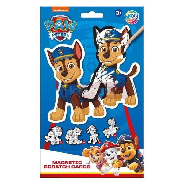 Zabawa ze zdrapkami PAW Patrol. Użyj pióra do zdrapywania, aby usunąć czarną warstwę i zobaczyć obraz swoich ulubionych bohaterów PAW Patrol. Przyklej magnes i umieść je na lodówce
