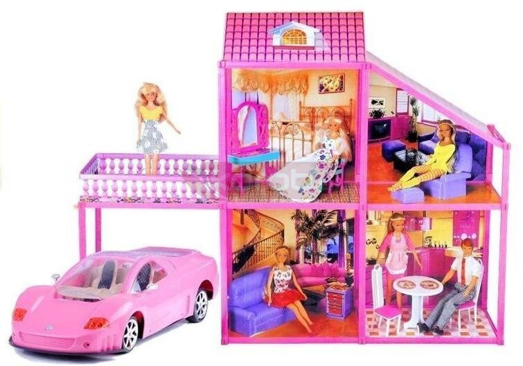 Willa dla lalek z różowym autem Dziewczynki uwielbiają zabawę w dom. Taka forma rozrywki pobudza kreatywność i pomysłowość dziecka, zajmując na długie godziny. Z tym zestawem maluch może urządzić domek wedle swoich upodobań, a potem bawić się w najlepsze. Duży rozmiar domku umożliwia zorganizowanie przyjęcia dla lalek, a także odgrywanie scenek z codziennego życia. Przyjemne, kolorowe wzornictwo willi, dokładność wykonania domku, a także wspaniałe tła we wnętrzu oraz najpotrzebniejsze mebelki na pewno skradną serce dziewczynek, a uśmiech nie będzie schodzić z ich twarzy. Otwarta konstrukcja domku pozwalana na komfortową zabawę bez możliwości przewrócenia elementów wyposażenia, a także oglądanie życia lalek i innych zabawek z różnych miejsc. Zestaw domku dla lalek z akcesoriami osiąga imponujący rozmiar - rozłożony osiąga około 76 cm, co na pewno zaskoczy każdą właścicielkę posiadłości. Co więcej, do zestawu dołączone są mebelki służące do wyposażenia pokoi oraz niespodzianka - dwuosobowe, sportowe auto w różowym kolorze. Dwupiętrowy dom dla laleczek składa się z czterech pokoi, tarasu z ochronnymi barierkami oraz otwartego garażu. Wnętrze pokoi dla mieszkańców tego domu jest bardzo kolorowe, wzorowane na klasycznych, znanych dzieciom mieszkaniach. Dziewczynka może bawić się lalkami do 29 cm w znajdujących się na parterze kuchni i salonie oraz na piętrze w sypialni, pokoju dziennym i tarasie. Przemyślana konstrukcja zabawkowego domku została dostosowana do małych dzieciaków i ich rączek. Posiadłość składa się z wytrzymałych, tekturowych ścianek działowych, podłóg, sufitu i dachu, oraz plastikowych, różowych stelaży utrzymujących stabilnie całą budowlę. Materiały, z których zostały wyprodukowane wszelkie części tego zestawu, są wytrzymałe i atestowane, co oznacza nie tylko ich długą żywotność, ale bezpieczeństwo, dzięki czemu Twoja pociecha bez obaw może rozkoszować się zabawą. Zabawkowa willa dla lalek da dziewczynce szansę na świetną zabawę, podczas której może poczuć się architektem, a także kreatorem wnętrz, co na pewno sprawi jej wielką przyjemność. Możliwość dowolnego ułożenia mebelków rozwinie wyobraźnię dziecka, a także umożliwi wspólną zabawę wraz z koleżankami z wyposażeniem pochodzącym z ich kolekcji. W zestawie kolorowego domku znajduje się: -naklejki do ozdoby domku, - różowe auto dla lalki, - toaletka z lusterkiem, - siedzisko pasujące do toaletki, - kanapa, - stolik, - fotel, - podnóżek, - stół, - dwa krzesła. Wymiary elementów: - podłogi: 35 cm x 21,5 cm, - ściany: 35 cm x 36 cm, - samochód: 45 cm x 12 cm. Wielkość rozłożonego domku: - 105 cm x 80 cm x 23,5 cm. Wymiary opakowania bajecznej willi: - 55,5 cm x 50 cm x 25 cm.