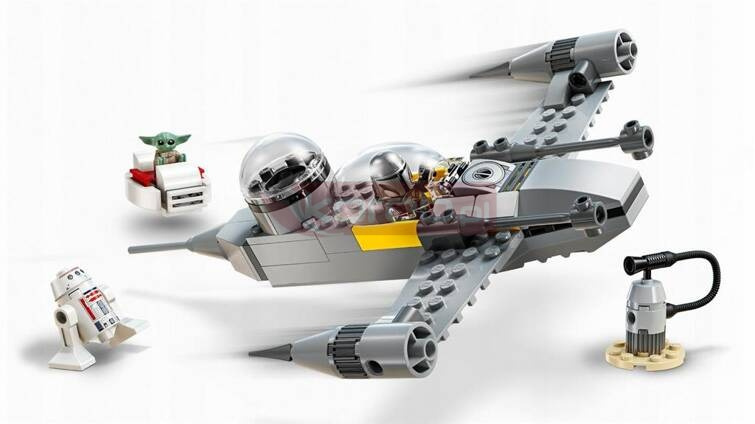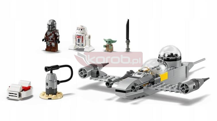 Ten zestaw z modelem myśliwca N-1 zawiera trzy postacie LEGO Star Wars: Mandalorianina z mrocznym mieczem i plecakiem odrzutowym, Grogu z lewitującym wózkiem i droida R5-D4. Umieść Mandalorianina w otwieranym kokpicie myśliwca N-1, a Grogu w części pasażerskiej z tyłu.