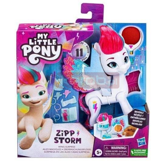 Figurka przedstawia odważnego i niezależnego pegaza, który wyróżnia się barwną grzywą i ogonem w energetycznych odcieniach różu i błękitu. Jego duże, błyszczące skrzydła to prawdziwy hit nie tylko przyciągają wzrok pięknymi wzorami, ale także można je otwierać, by odkryć ukrytą niespodziankę. Zipp Storm ma na sobie sportowe akcesoria, takie jak stylowe gogle oraz tematyczne ozdoby, które podkreślają jej dynamiczny charakter.