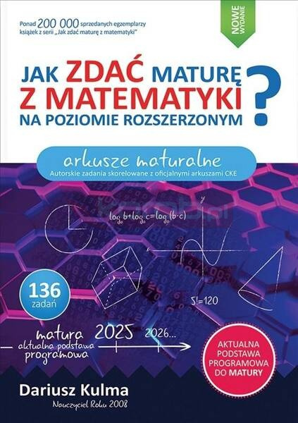 Niniejsza książka stanowi kompleksowe narzędzie przygotowujące do egzaminu maturalnego z matematyki na poziomie rozszerzonym. Autor, Dariusz Kulma, wykorzystując swoje doświadczenie i wiedzę, stworzył autorskie zadania, które są zgodne z wytycznymi Centralnej Komisji Egzaminacyjnej.
