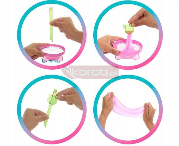 Dzięki 8 niespodziankom rozpakowywanie lalki Barbie® Pop Reveal™ z serii Shake Zwierzaczkowa imprezka zapewnia mnóstwo radości. Odkręć uszate wieczko z błyszczącym slimem i przebij wierzchnią warstwę słomką, aby pobawić się elastyczną masą. Następnie odpakuj pachnącą jak shake lalkę modową Barbie Uroczy kotek do ustawiania w różnych pozach z długimi różowo-zielonymi włosami. Otwórz 2 „kostki lodu”, aby znaleźć kolejne niespodzianki – kolorową spódniczkę i uroczą parę bucików. „Kostek lodu” możesz używać do przechowywania elementów lub odkrywania akcesoriów wciąż od nowa. W torebkach-niespodziankach znajdziesz więcej elementów do stylizacji i zabawy, takich jak pachnący mięciutki kotek, legowisko dla zwierzaka oraz opaskę z uszkami dla lalki! Za pomocą lodowatej wody odkryjesz dekorację na buzi lalki – użyj ciepłej wody, aby wrócić do poprzedniego wyglądu. Tę magiczną transformację możesz powtarzać w nieskończoność! Lalki Barbie® Pop Reveal™ z serii Shake Zwierzaczkowa imprezka to świetny prezent do zabawy sensorycznej dla dzieci od 3 roku życia.