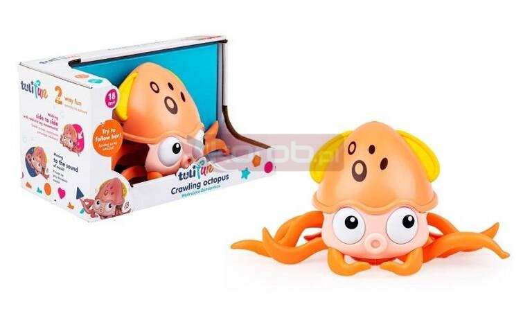 Rozbrykane macki i wesoła minka, to właśnie ona, Wędrująca Ośmiornica, która zachęca maluchy do ruchu! Zabawka wyposażona została w dwa tryby działania. Pierwszy pozwala zabawce przemieszczać się na boki przy realistycznym poruszaniu odnóżami. Drugi tryb uruchamia dodatkowo muzykę, przy których to dźwiękach ośmiornica porusza się w ten sam sposób, co w pierwszym trybie. Za uruchomienie wybranego trybu odpowiada przełącznik umieszczony na spodzie zabawki. Ośmiornica zasilana jest bateriami (niezawarte w zestawie).