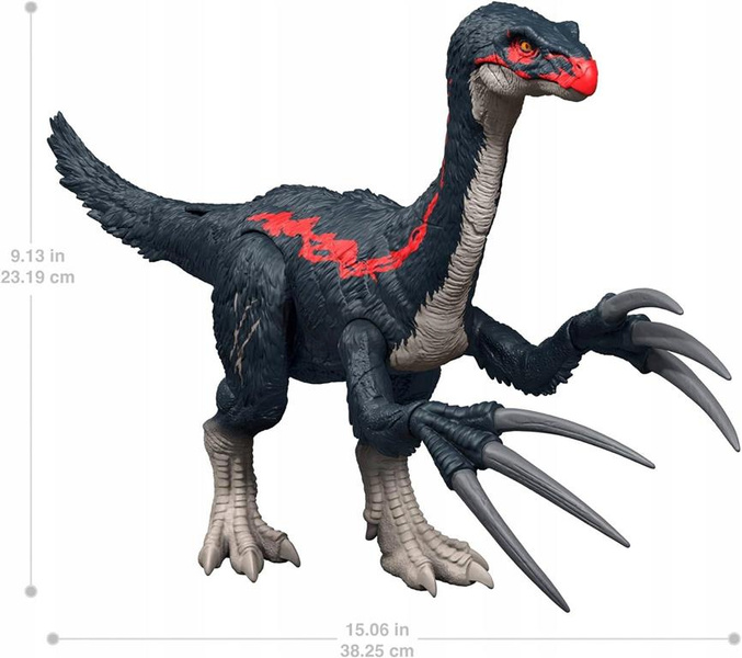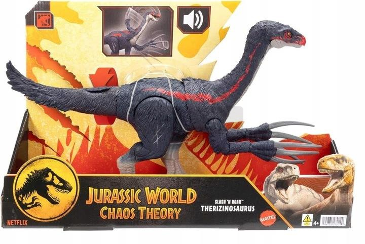 JURASSIC WORLD DINOZAUR atakujący THERIZINOSAURUS z dźwiękiem, szponami JCG17