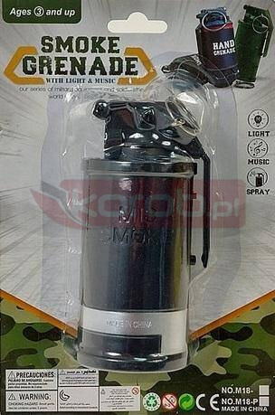 zabawka granat z dźwiękiem, światło, dym; 13x6x7cm, B/C