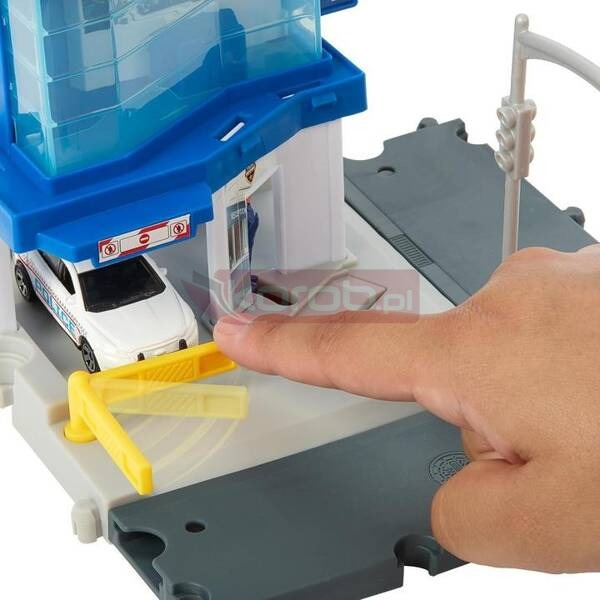 Dołącz do pełnych akcji w mieście Matchbox® dzięki zestawowi Prawdziwe Przygody Posterunek policji. W zestawie są funkcje aktywowane ręcznie i pojazdem, takie jak obracająca się satelita zmieniająca „ekran” monitora w pokoju kontrolnym oraz figurka ruszająca się, by powitać nadjeżdżający samochód. Znajdziesz tu też 1 radiowóz Matchbox® Ford Interceptor w skali 1:64, który wygląda jak prawdziwy. Połącz ten zestaw z innymi zestawami Matchbox® i HW®, aby zabawa autami nie miała końca. Świetny prezent dla dzieci w wieku od 3 lat W opakowaniu jest jeden samochodzik Matchbox™ w skali 1:64.