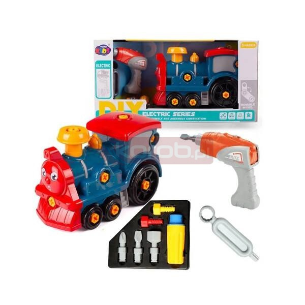 Kolorowa duża lokomotywa do rozkręcania to świetna zabawka dla dziecka, które uwielbia majsterkować - zabawka zajmie Twoją pociechę na wiele godzin. Do zabawki dołączono zestaw narzędzi - wkrętarkę, śrubokręt oraz wymienne końcówki stanowiące nieodłączny element tej zabawki, pozwalając dzieciom na samodzielne rozkręcanie i skręcanie pojazdu. Zabawka rozwijająca koordynację ruchową i wzrokową dziecka jest świetną formą spędzania czasu dla dziecka. Pociąg do samodzielnego skręcania to zabawka, która doskonale pobudzi kreatywność u dzieci. Zestaw do zbudowania swojej własnej ciuchci na pewno zadowoli każde dziecko. Znajdziemy wiele elementów do samodzielnego rozkręcania i przykręcania poszczególnych elementów, a także wkrętarkę na baterie.