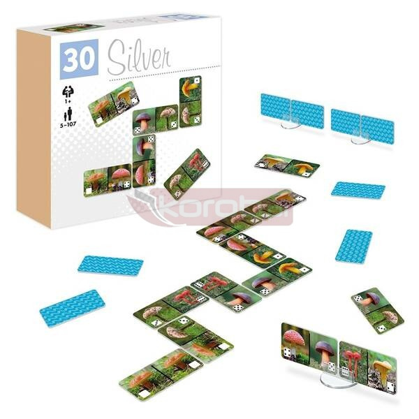 Domino Silver to seria klasycznych gier składających się z prostokątnych tabliczek, przedzielonych na pół za pomocą różnej grafiki. Zabawa polega na właściwym dopasowaniu elementów prezentujących tą samą liczbę kropek. Wygrywa w niej ten, kto pierwszy pozbędzie się swoich tabliczek, przez dokładanie ich do odpowiedników leżących na stole. Większy niż standardowo rozmiar tabliczek ułatwia chwytanie.