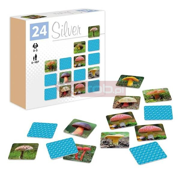 Memosy z serii Silver to klasyczna gra, w której wygrywa ten, kto najlepiej zapamięta położenie par tych samych obrazków. Tabliczki rozkładamy na stole rewersem do góry, a potem odkrywamy po dwie na raz i staramy się zapamiętać ich położenie, aby odnaleźć wszystkie pary.