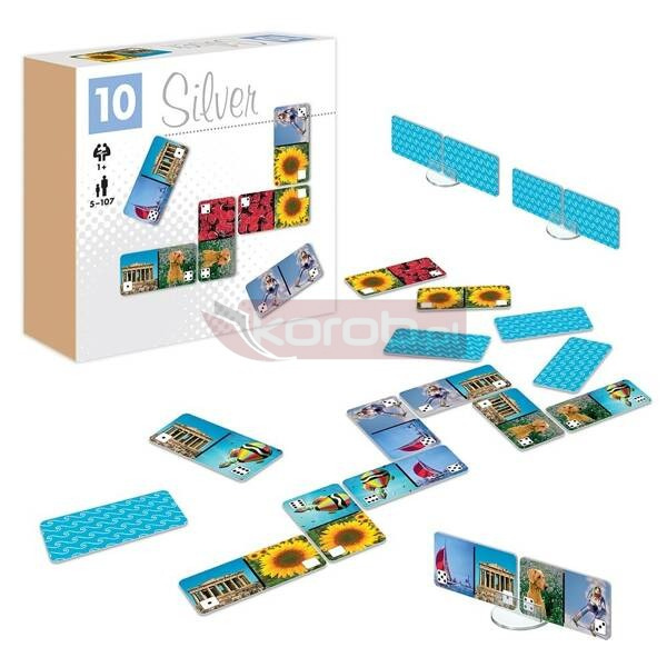 Domino Silver to seria klasycznych gier składających się z prostokątnych tabliczek, przedzielonych na pół za pomocą różnej grafiki. Zabawa polega na właściwym dopasowaniu elementów prezentujących ten sam obrazek. Wygrywa w niej ten, kto pierwszy pozbędzie się swoich tabliczek, przez dokładanie ich do odpowiedników leżących na stole. Większy niż standardowo rozmiar tabliczek ułatwia chwytanie.