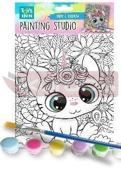 Canvas Kotek do pomalowania od Toys Inn to doskonały pomysł na kreatywne spędzenie wolnego czasu. W zestawie znajduje się podobrazie do pomalowania o wymiarach 15x25 cm, pędzel, farby w 6 kolorach: białym, żółtym, różowym, niebieskim, zielonym i szarym, a także miseczka.