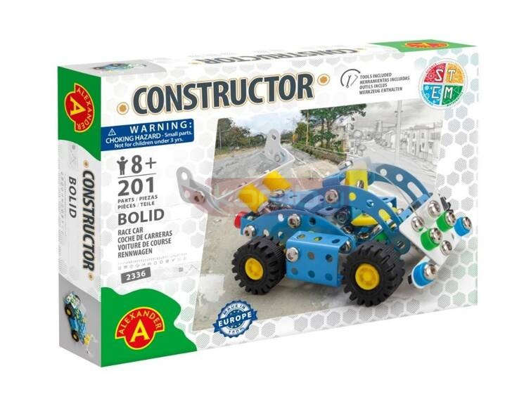 metalowych o różnej wielkości i kształtach, a także jest wzbogacony kolorowymi elementami z tworzyw sztucznych. Dzięki dołączonemu zestawowi narzędzi, można